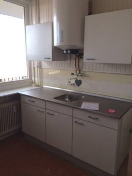 Indeling: entree, tochtportaal, hal, toilet met fontein. Ruime L-vormige woonkamer en balkon op het Zuid-Oosten. Dichte keuken met eenvoudig keukenblok. Badkamer met douche, vaste wastafel en wasmachineaansluiting. 2 slaapkamers.