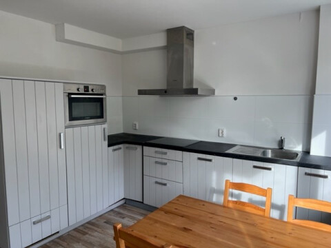 Hal, toilet, woonkamer, open keuken voorzien van combi-magnetron, inductie kookplaat, afzuigkap en vaatwasser. Vanuit de hal te bereiken twee slaapkamers en badkamer met ligbad, douche en moderne wastafel.